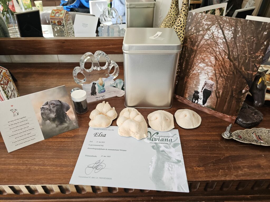 Elsa leefde nog een paar maanden na de fotoshoot. Ze ging snel achteruit. Elsa was een ontzettend lieve, blije hond die heel graag met haar baasje mee uit wandelen ging. Zelfs de laatste dagen voor de euthanasie heeft Taylor haar meegenomen naar het bos. Als Elsa niet meer lopen kon of wilde, lag ze gewoon heerlijk in de kofferbak met de klep open alle luchtjes op te snuiven. Wat een geluk en wat een liefde. In de week erop ontving ik deze foto van Taylor. Haar meisje was weer thuis.